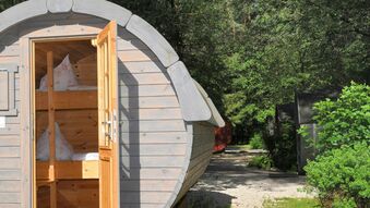 Während die Schüler in gemütlichen Schlaffässern, halbrunden Pods oder im idyllischen Trollwald übernachten, können die Lehrkräfte den Komfort der Mobilheime nutzen.