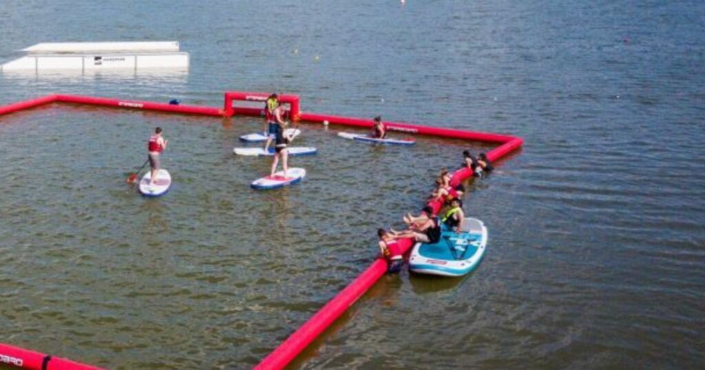 Beim SUP Polo erleben Sie Spaß und Action auf dem Wasser. Das Spielfeld besteht auf aufblasbaren Banden und zwei gegenüberliegenden Toren. Im Preis enthalten ist jegliches Material.