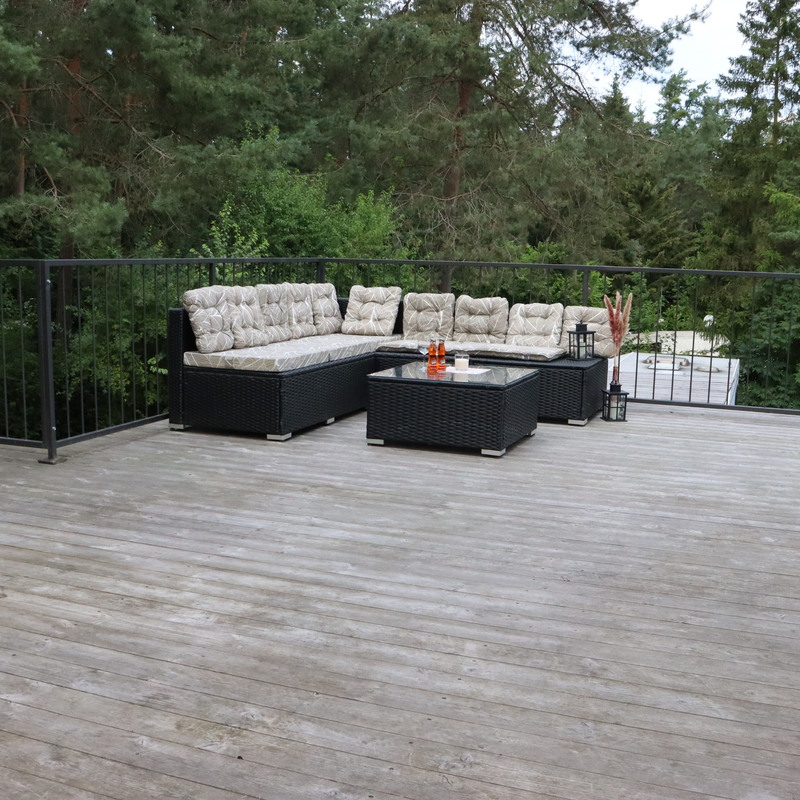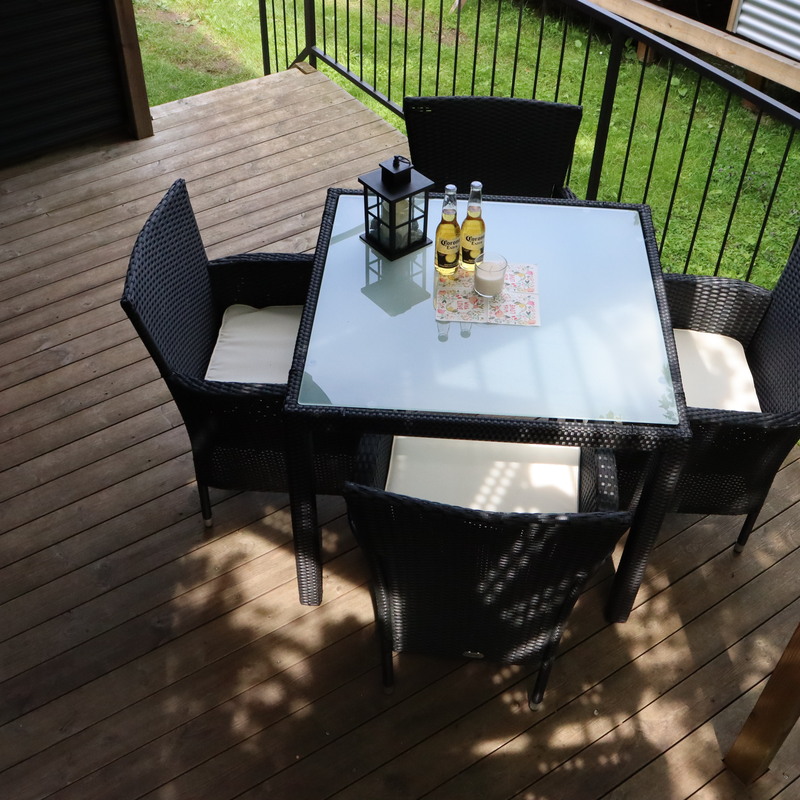 Grundausstattung Koch- und Essgeschirr, Herd, teilweise Backofen, Kaffeemaschine, Wasserkocher, Sonnenschirm, Wäscheständer